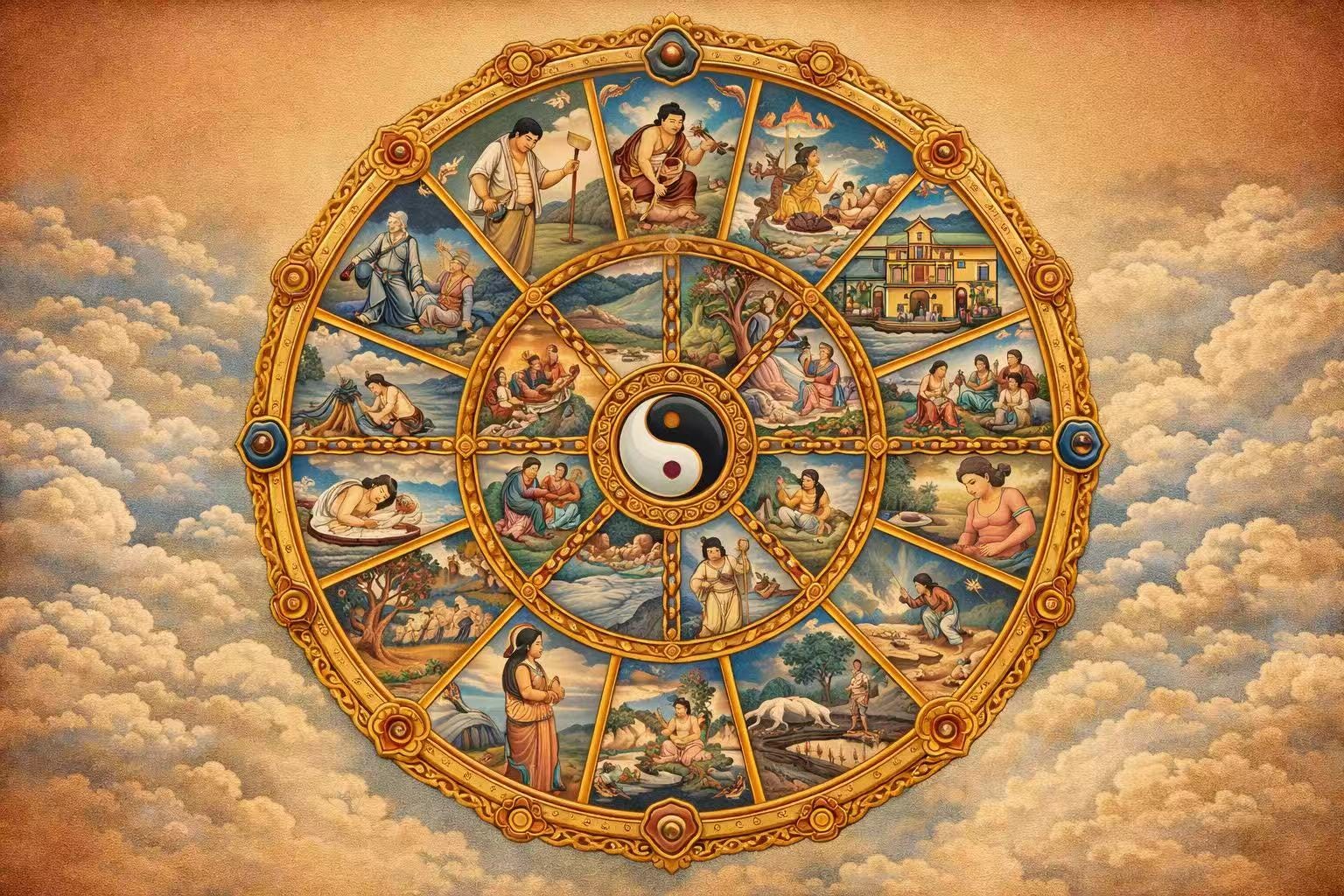 The staggering variety of lives, bodies, circumstances, trajectories, all of it traces back to accumulated intentional action in a stream of consciousness that doesn’t snap off at death. No divine blueprint. No random static. Just the momentum of what you’ve willed and done.